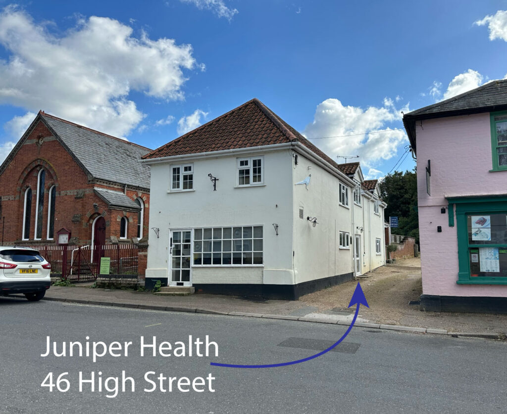 I practice from my new premises in Ixworth, Suffolk – Juniper, 46 High Street, Ixworth, IP31 2HJ